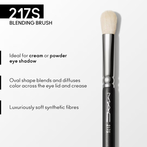 - برس 217S یک برس blend حرفهای برای چشم است، با موی 100٪ مصنوعی (synthetic) و الیاف بسیار نرم و متراکم که برای پخش و محو کردن سایه (پودر یا کرمی) طراحی شده است.